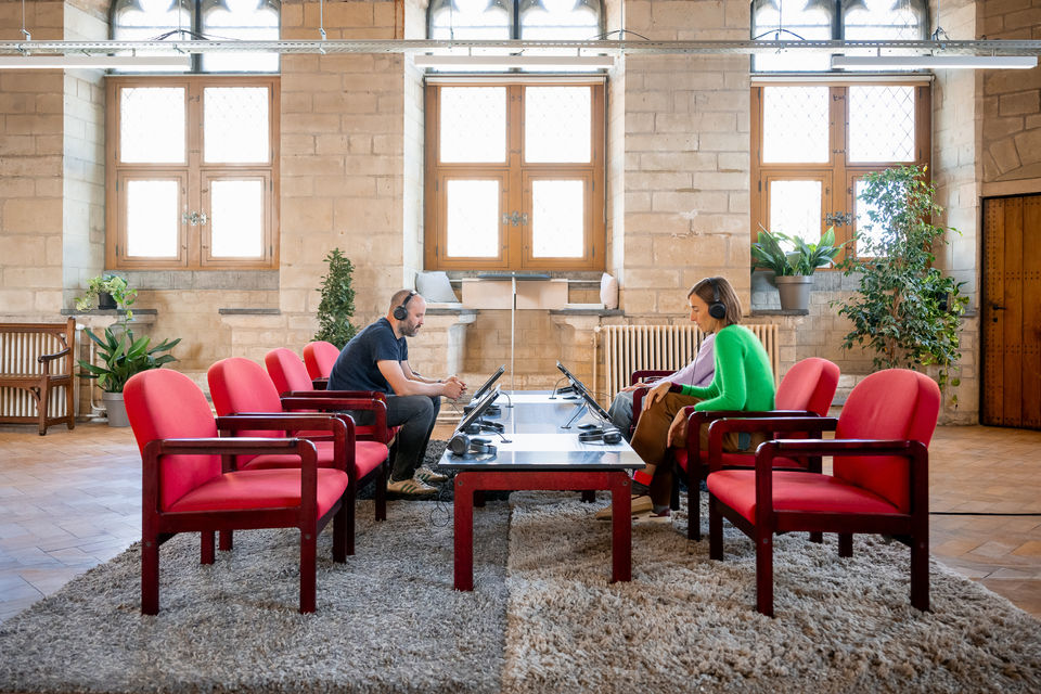 Fugzia zorgde voor algemene tentoonstellingsconcept en de scenografie. Samen met Mojuice ontwikkelden wel allerlei audio-visuele installaties zoals de projectiemapping op het schilderij 'De Gerechtigheid van keizer Otto III' van Bouts. Atelier 03 werkte dan weer een holografisch projectie uit waarin Dieric Bouts tot leven komt en de bezoekers rechtstreeks aanspreekt. En tot slot heeft Geheugen Collectief ons geholpen bij het schrijven van de publiekteksten, vertalingen en scenario's voor de verschillende luisterverhalen.