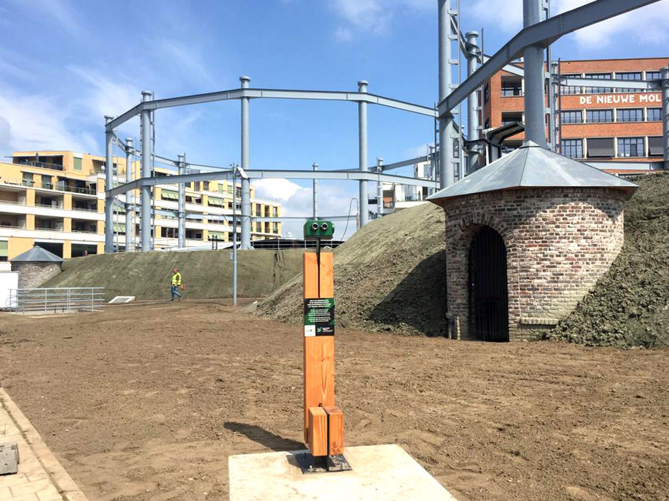Voor het Industriemuseum ontwikkelden wij enkele scenografische elementen op de site. Samen vertellen ze een verhaal van 100 jaar industrieel verleden. Basisinfo vind je op de infopanelen, maar via de erfgoedapp kan je heel wat extra informatie opvragen. Zo toont een animatie hoe de gashouders werkten en krijg je verschillende getuigenissen te zien in filmpjes die we speciaal hiervoor opnamen. In de 3D kijkers die we installeerden op de site, krijg je dan weer unieke historische beelden van de site te zien.